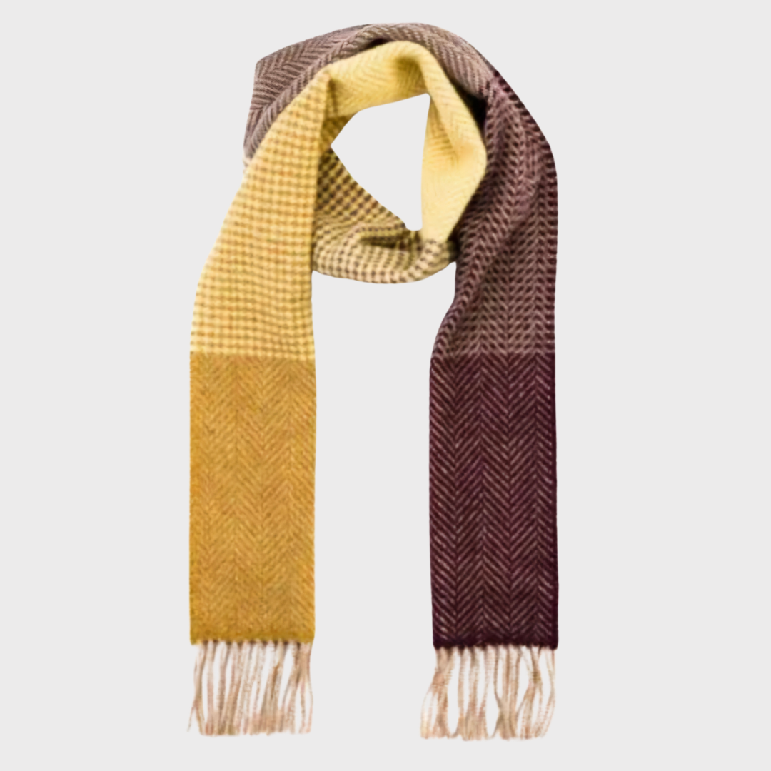 Experience the warmth and elegance of the John Hanly Irish Cashmere Merino scarf, featuring a rich gold to mustard mixed plaid design. Crafted from premium cashmere and merino wool, this scarf offers exceptional softness and insulation, perfect for chilly days. Its classic pattern adds a timeless touch to any outfit while providing cosy comfort all day long. Ideal for those seeking both style and warmth in one accessory.