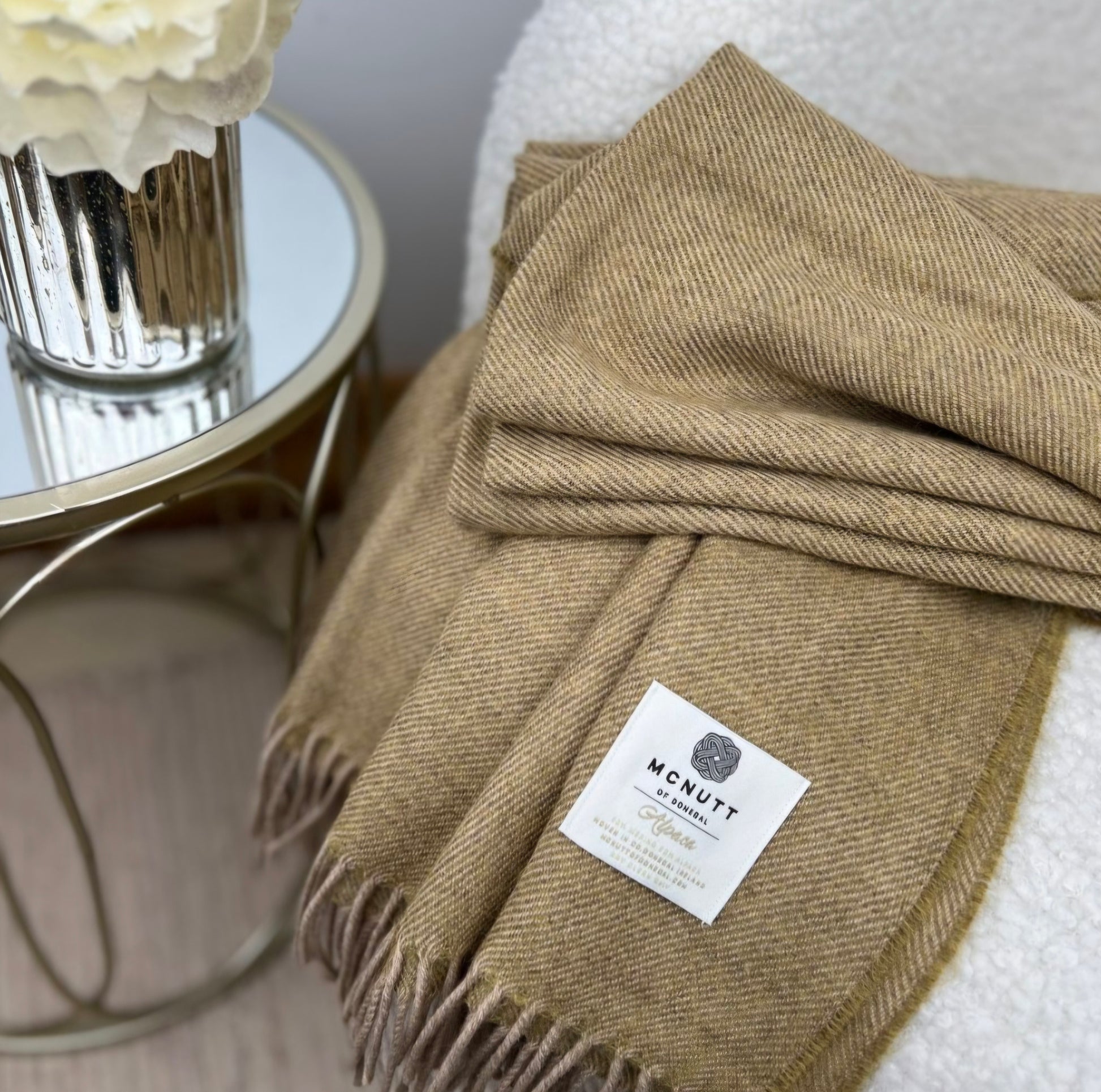 The Olive Alpaca Lambswool is a supersoft throw in a warm yet easy to match shade.