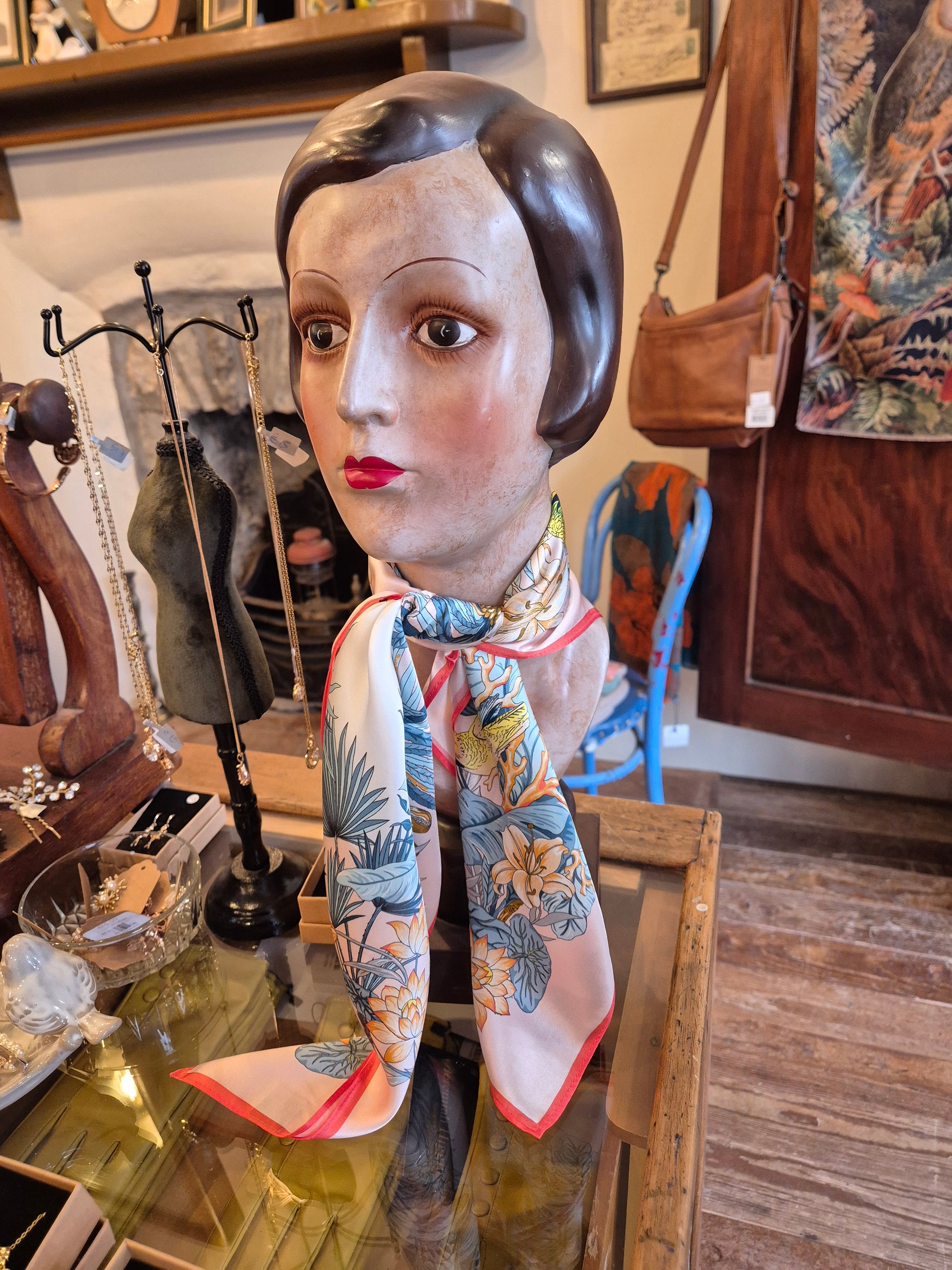 Elevate your ensemble with this exquisite Mulberry Silk Tropical Square Scarf. Handmade from 100% pure Mulberry silk, its smooth texture and vibrant tropical print bring a refined, luxurious touch to any outfit. Lightweight yet durable, this scarf offers both elegance and comfort, perfect for enhancing your style with a sophisticated flair.