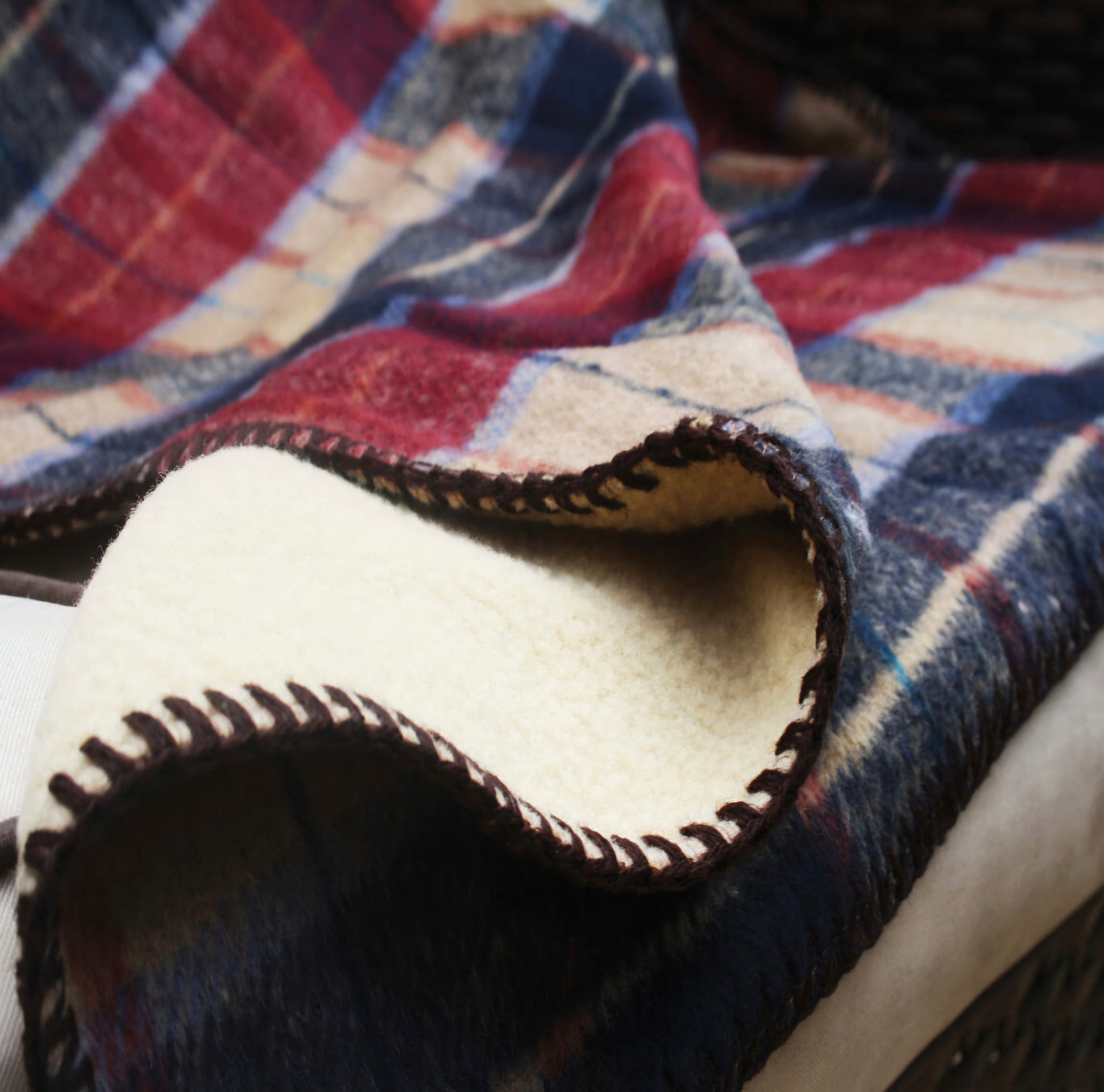 Celtic Weavers Red Check Fleece Lined Tweed Blanket